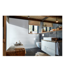 MeisterPaneele. terra sind die Badspezialisten im Paneel-Sortiment von MEISTER. Der besondere Produktaufbau mit Terracell-Oberfläche und Terragen-Trägerplatte hat eine nachgewiesene Anti-Schimmel-Wirkung und macht die Paneele terra damit besonders feuchtraumgeeignet. Alle Dekore stehen in fünf verschiedenen Längen von 1280 mm bis 4100 mm zur Auswahl und haben besonders behandelte Kopfkanten, die eine Endlosverlegung ohne sichtbare Stöße ermöglichen.