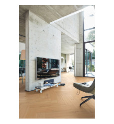 Lindura im Fischgrätformat - ein klassisches Verlegemuster ganz modern interpretiert! Durch das ultramattlackierte Finish, das jede einzelne Pore benetzt, wirkt der Boden nicht nur extra edel und natürlich, sondern ist auch besonders pflegeleicht, fleckenunempfindlich und resistent gegen Mikrokratzer (kleine Kratzer in der Lackoberfläche, die nicht bis zur Echtholzdeckschicht durchdringen). Auch die Verlegung ist dank des patentierten Klicksystem UniZip ganz unkompliziert, denn hier kommt statt A- und B-Dielen nur ein Dielentyp zum Einsatz.