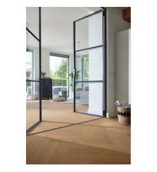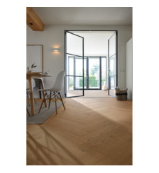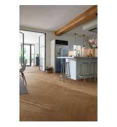 Lindura im Fischgrätformat - ein klassisches Verlegemuster ganz modern interpretiert! Durch das ultramattlackierte Finish, das jede einzelne Pore benetzt, wirkt der Boden nicht nur extra edel und natürlich, sondern ist auch besonders pflegeleicht, fleckenunempfindlich und resistent gegen Mikrokratzer (kleine Kratzer in der Lackoberfläche, die nicht bis zur Echtholzdeckschicht durchdringen). Auch die Verlegung ist dank des patentierten Klicksystem UniZip ganz unkompliziert, denn hier kommt statt A- und B-Dielen nur ein Dielentyp zum Einsatz.