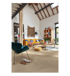 Fischgrät ganz modern interpretiert: Das traditionelle Verlegemuster wirkt edel, elegant und extrem abwechslungsreich – und ist als Laminatboden zusätzlich sehr pflegeleicht und strapazierfähig! Die hochwertige Synchronstruktur und eine feine Microfuge um jede einzelne Diele lassen den Boden besonders authentisch und natürlich wirken. Die spezielle Diamond Pro-Oberfläche ist kratzresistent, außerdem lichtecht und sogar chemikalienbeständig. Ein zusätzliches Plus: Die Verlegung ist mit dem patentierten UniZip-Verlegesystem kinderleicht!
